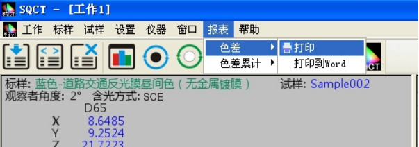 对试样的测试结果可以通过打印菜单生成测试报表,选中要打印的试样和标样,执行“报表->色差->打印/打印到word”或“报表->色差累计->打印/打印到word”,将测试结果打印出来,如图15、16所示。